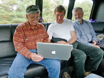 At some point in the Raptor Conference I drew this little hawk head which was spotted by David Sibley when he arrived Thursday night. He emailed -"I just walked into the Grand Hotel at Cape May and saw your "mark" on the whiteboard. You must have been here for the RRF meeting, are you still around?" Sure enough we met up the next morning and I helped him sign the official conference painting that he made, raptors circling the lighthouse. Framed and on the wall now. On the beach he pointed out the migrating lines of scoters, which I had assumed all this time were cormorants, oops. Here he is with Dr. Tom Cade, a Hero-Fest in New Jersey!